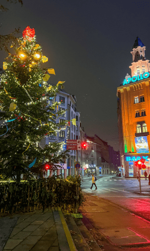 Take an evening stroll to see the main Christmas tree and watch the hourly Astronomical Clock show. End your night with a mug of glühwien and a plate of Trdelník while people-watching.